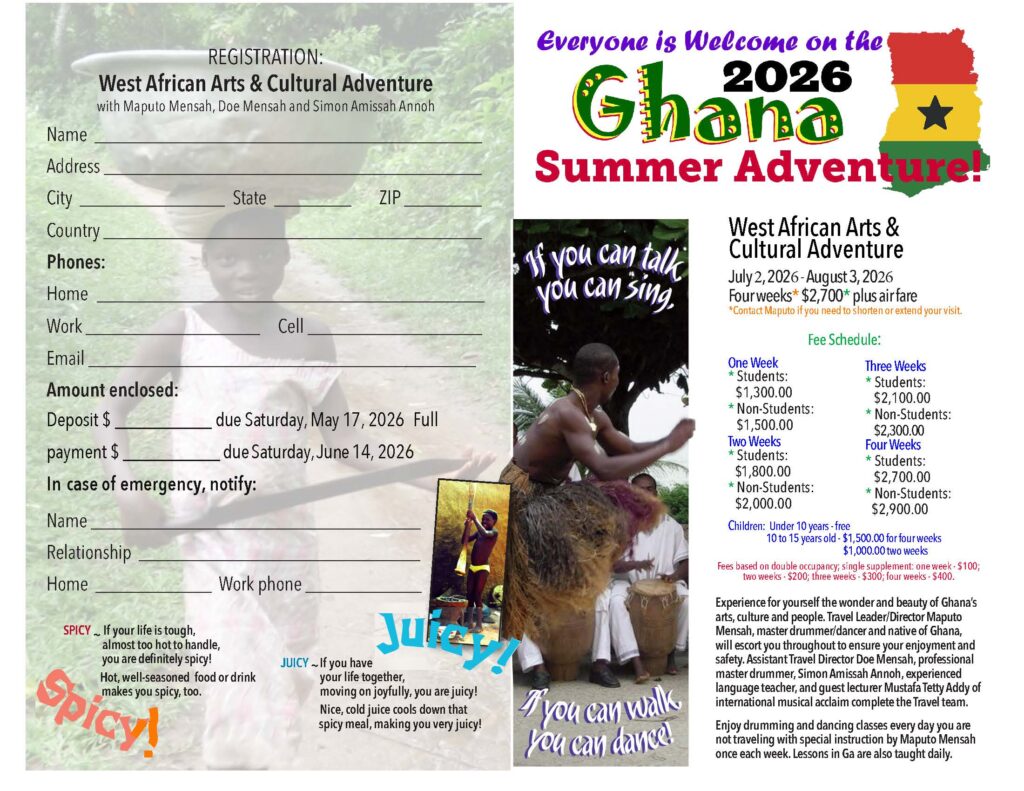 2026 Ghana Trip For information and to reserve your space on this trip, contact Maputo Mensah:maputomensah@gmail.com720-280-2242